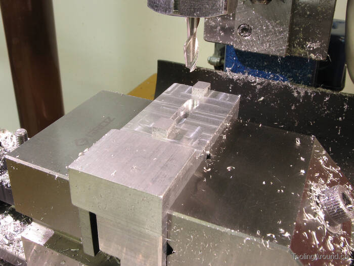 The work piece was held in this position for all of the milling on the front side.