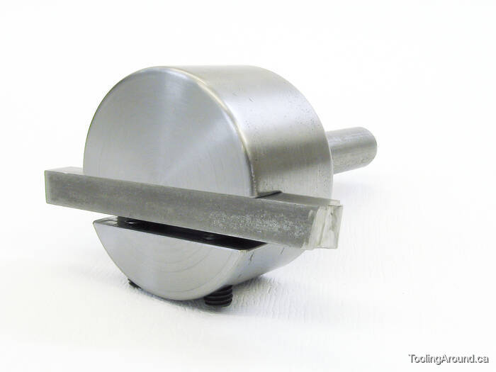 The slot is cut so as to place one side of the slot on the axis of rotation. By placing the “cutting side” of the cutter against this side of the slot, the cutter is correctly positioned relative to the axis of rotation.